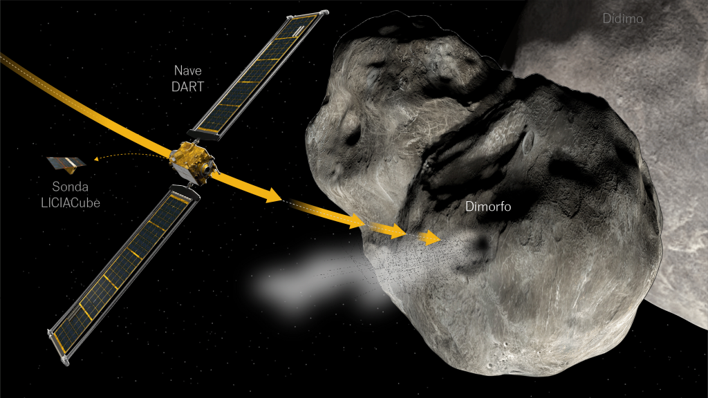 Supongo que te enteraste de la misión DART (Double Asteroid Redirection Test), una misión espacial cuyo objetivo era estrellar una sonda espacial contra el asteroide Dimorphos, satélite de Didymos en sistema binario, para probar si la energía cinética del impacto de una nave espacial podría desviar con éxito un asteroide en curso de colisión con la Tierra.